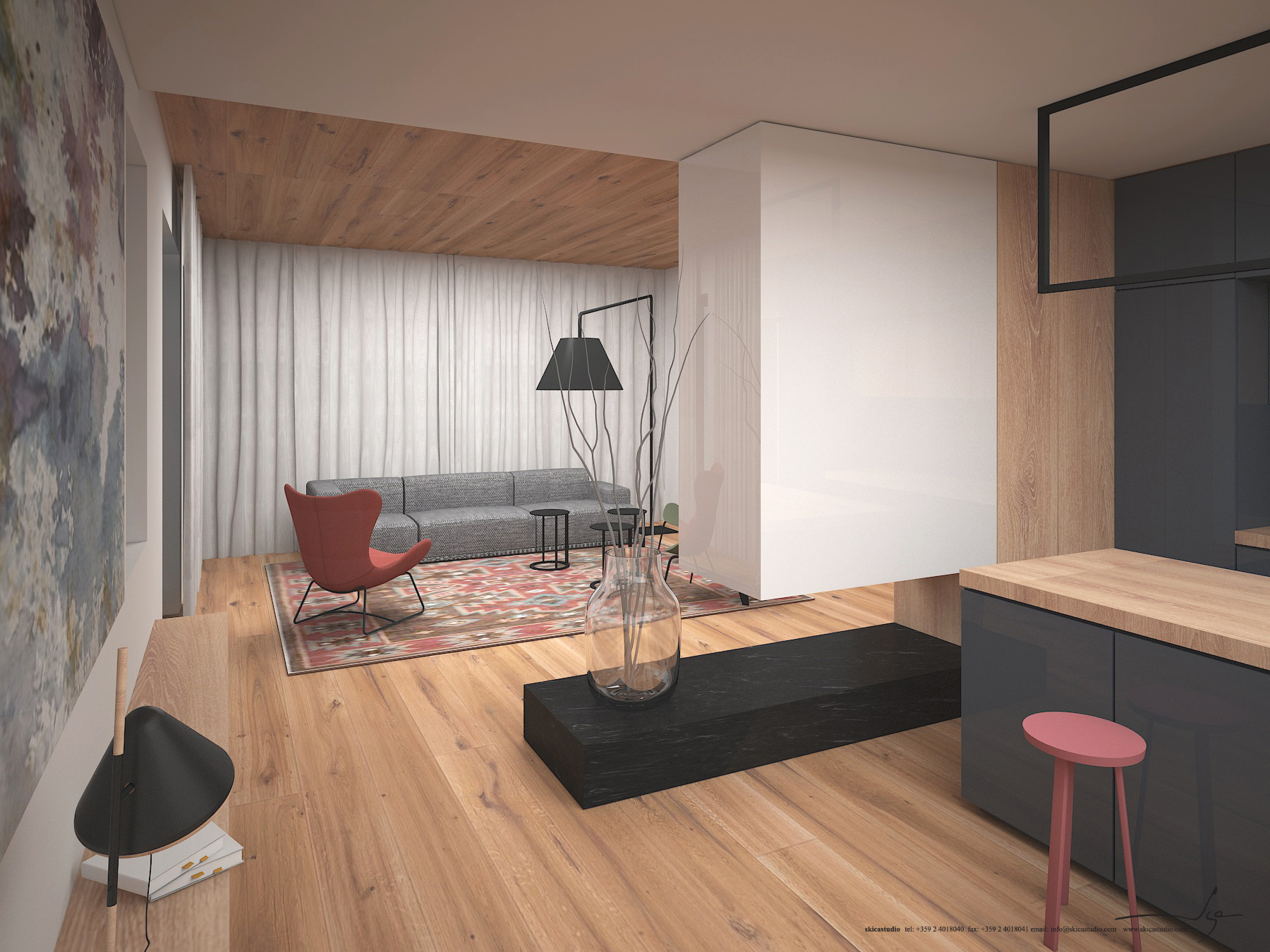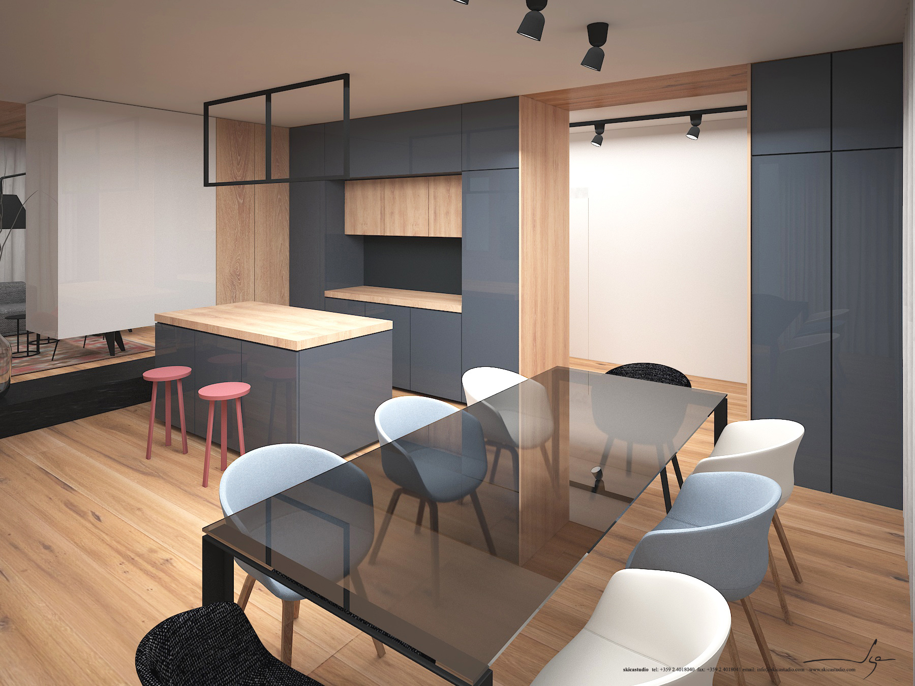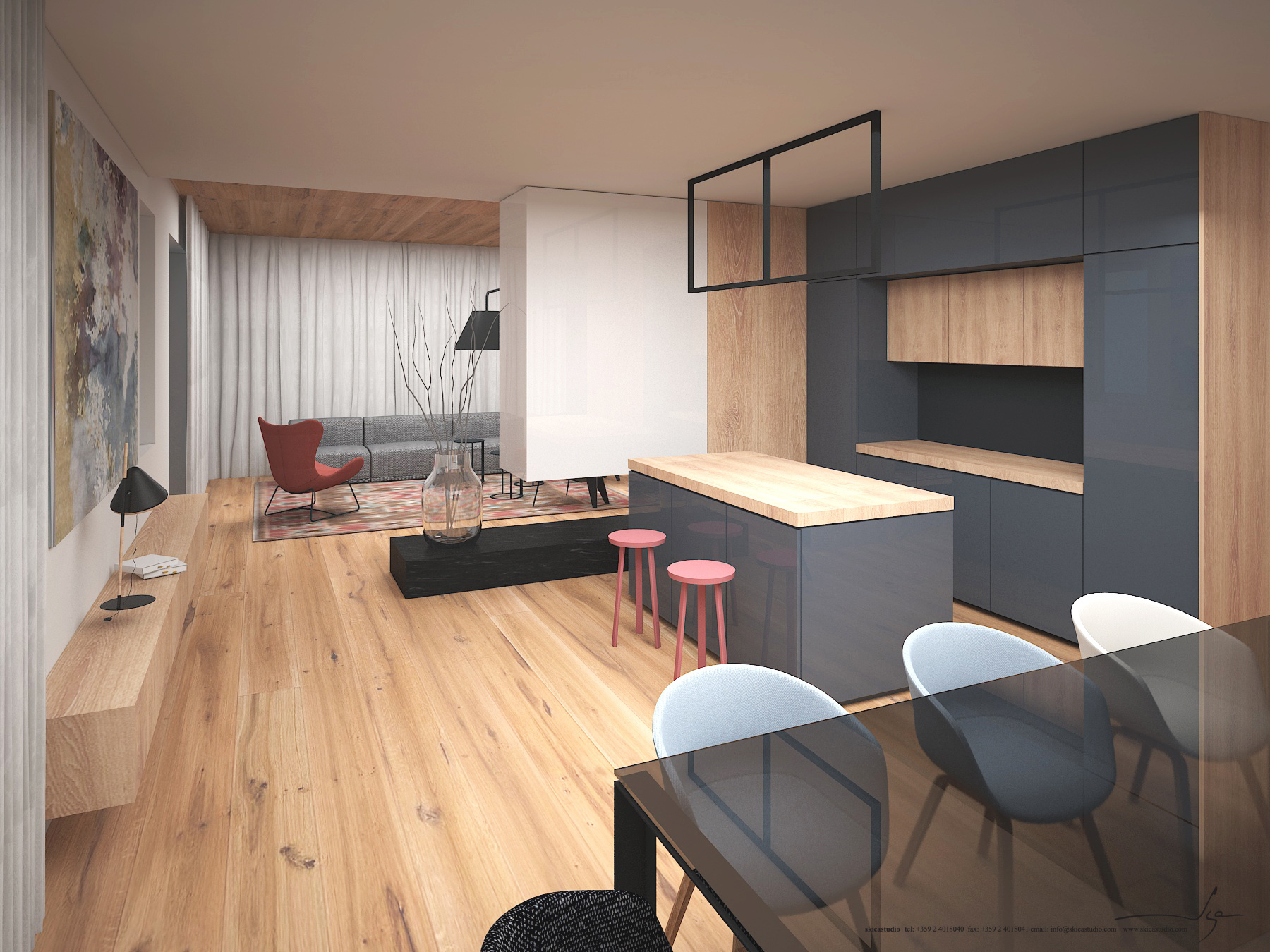 Еднофамилна жилищна сграда на два етажа в рамките на ж.к. София Парк. В този проект Студио Скица работи по създаването на интериорен дизайн и управлението и координацията на процеса по реализирането му.