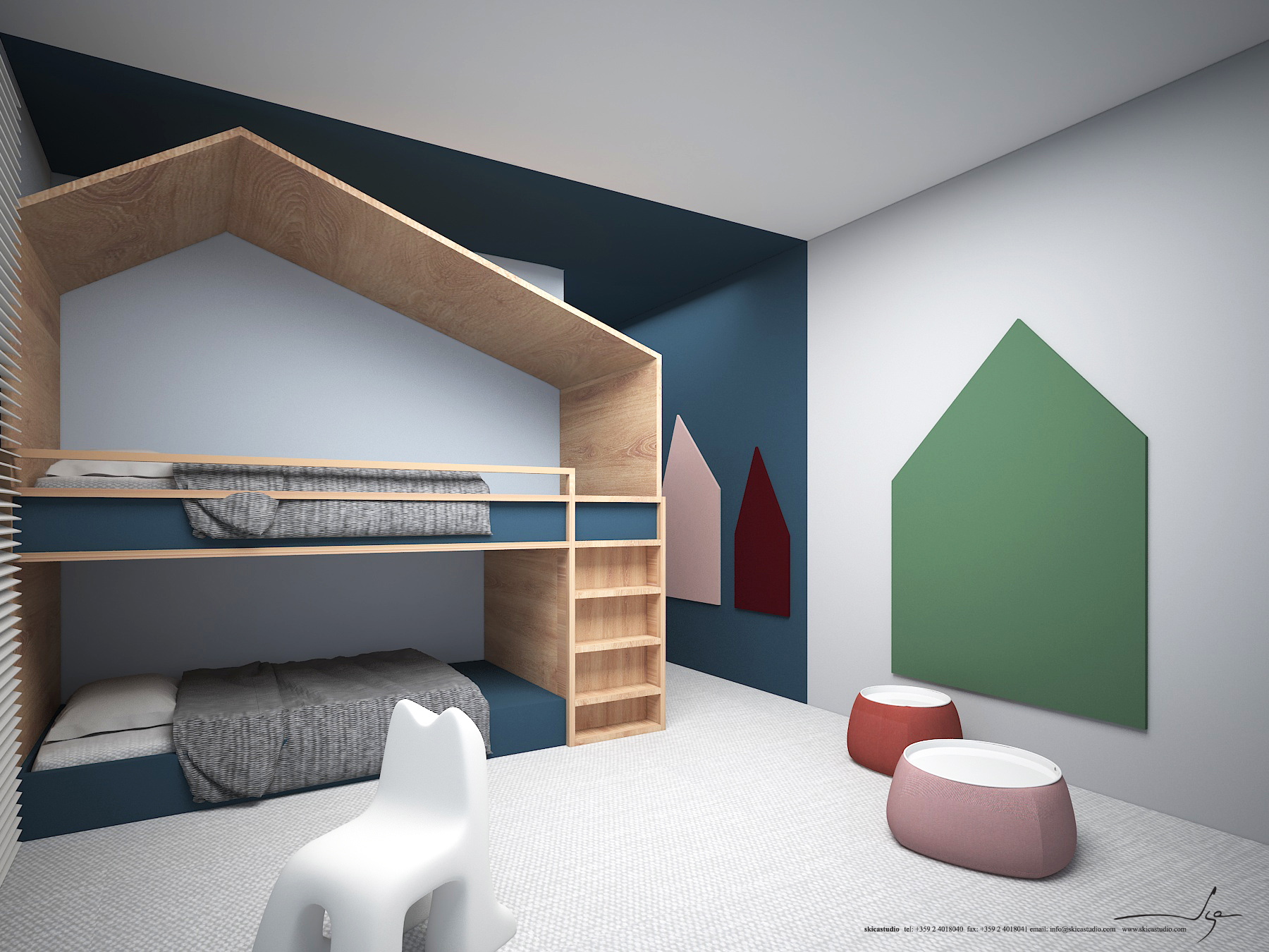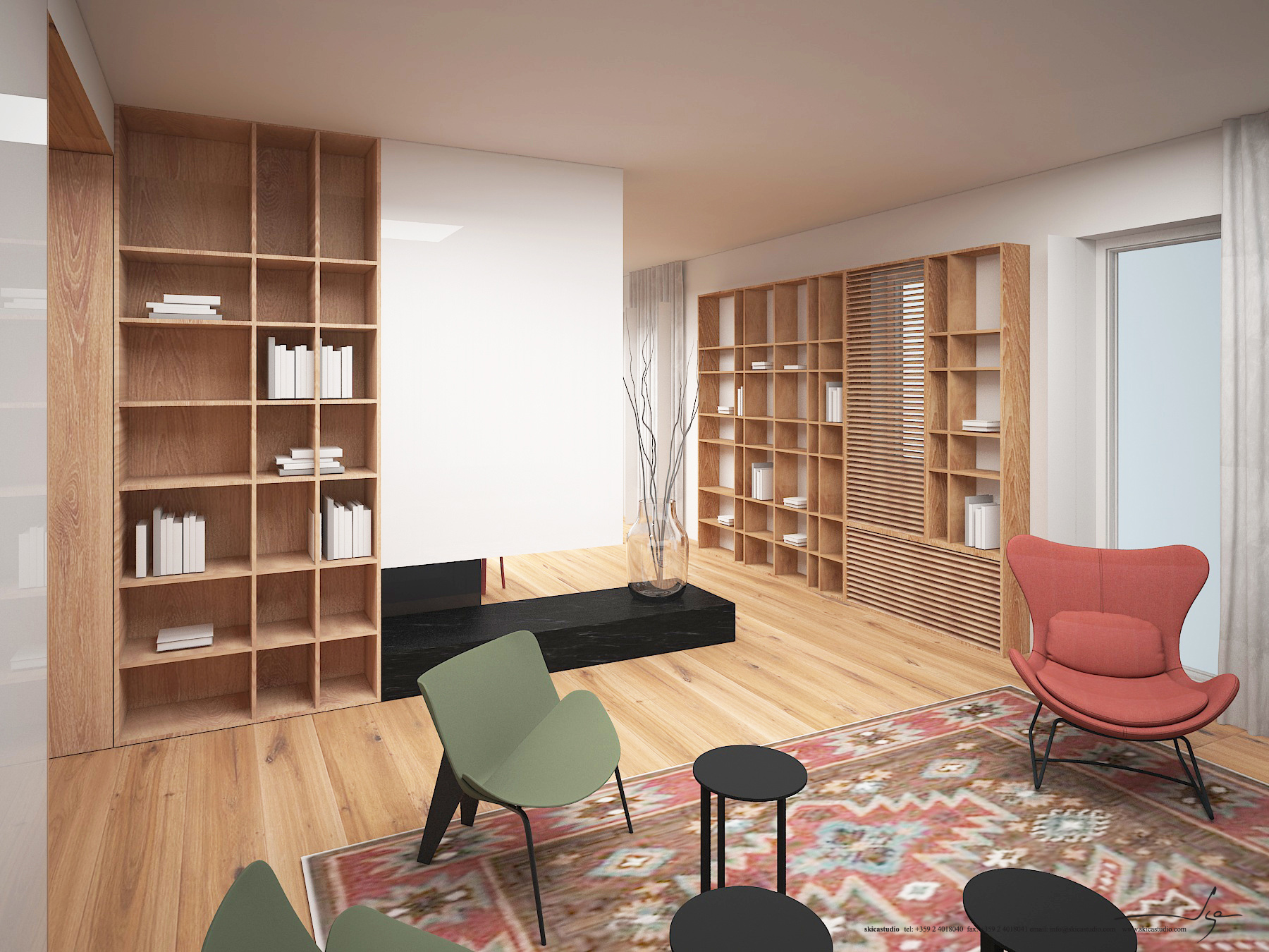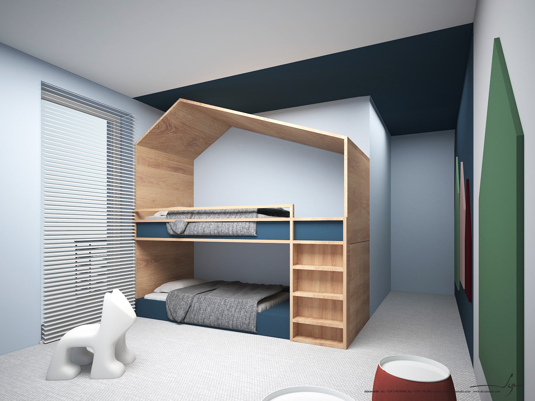 Еднофамилна жилищна сграда на два етажа в рамките на ж.к. София Парк. В този проект Студио Скица работи по създаването на интериорен дизайн и управлението и координацията на процеса по реализирането му.