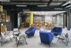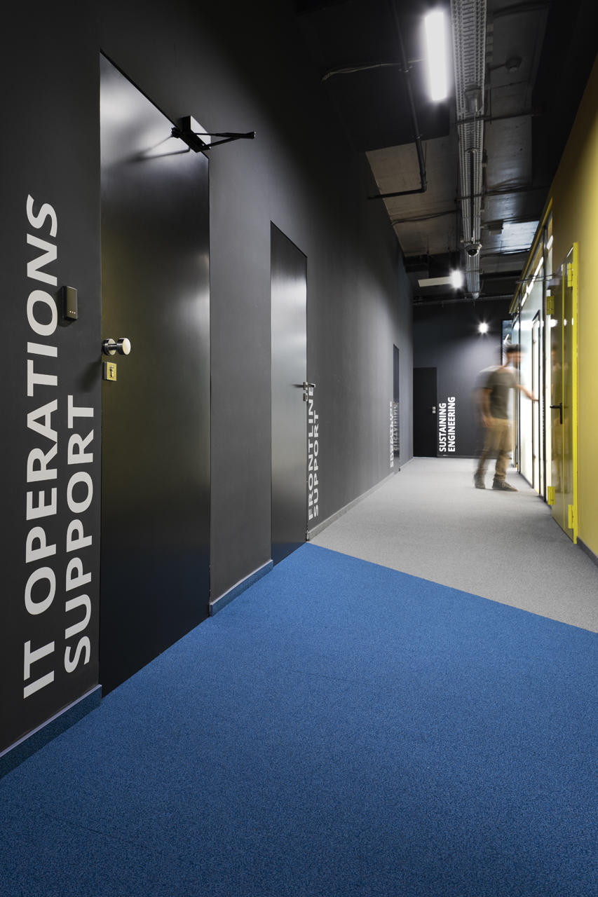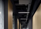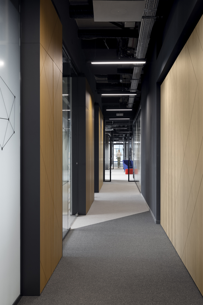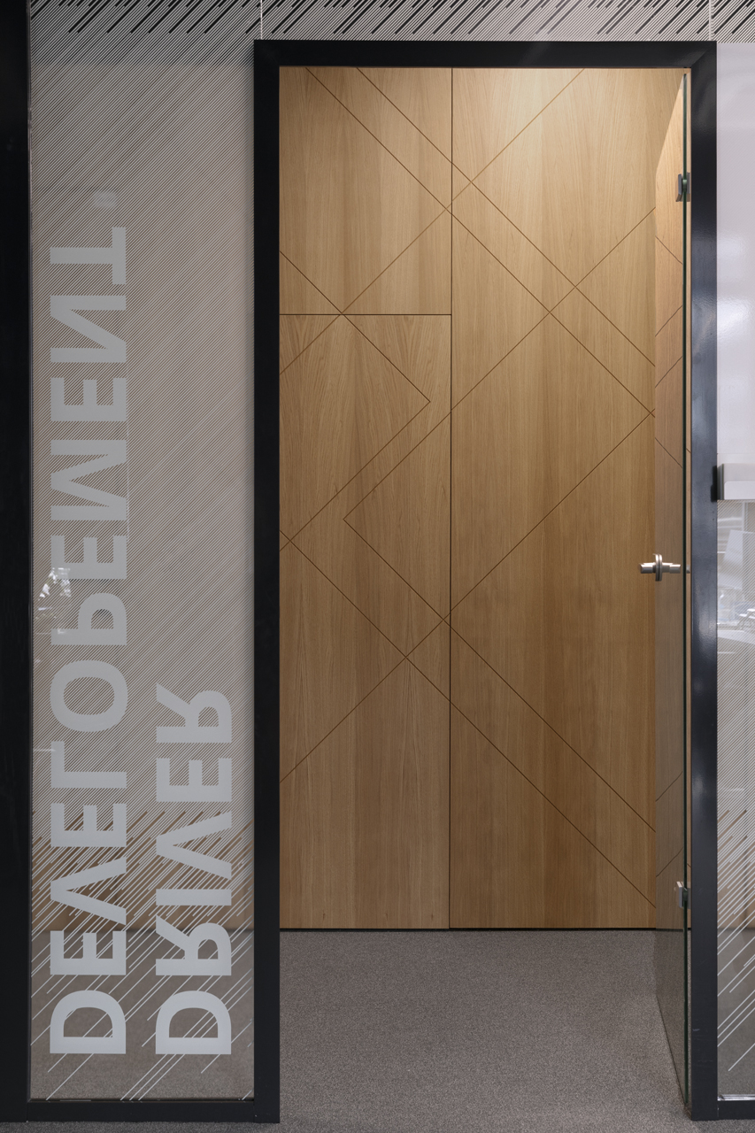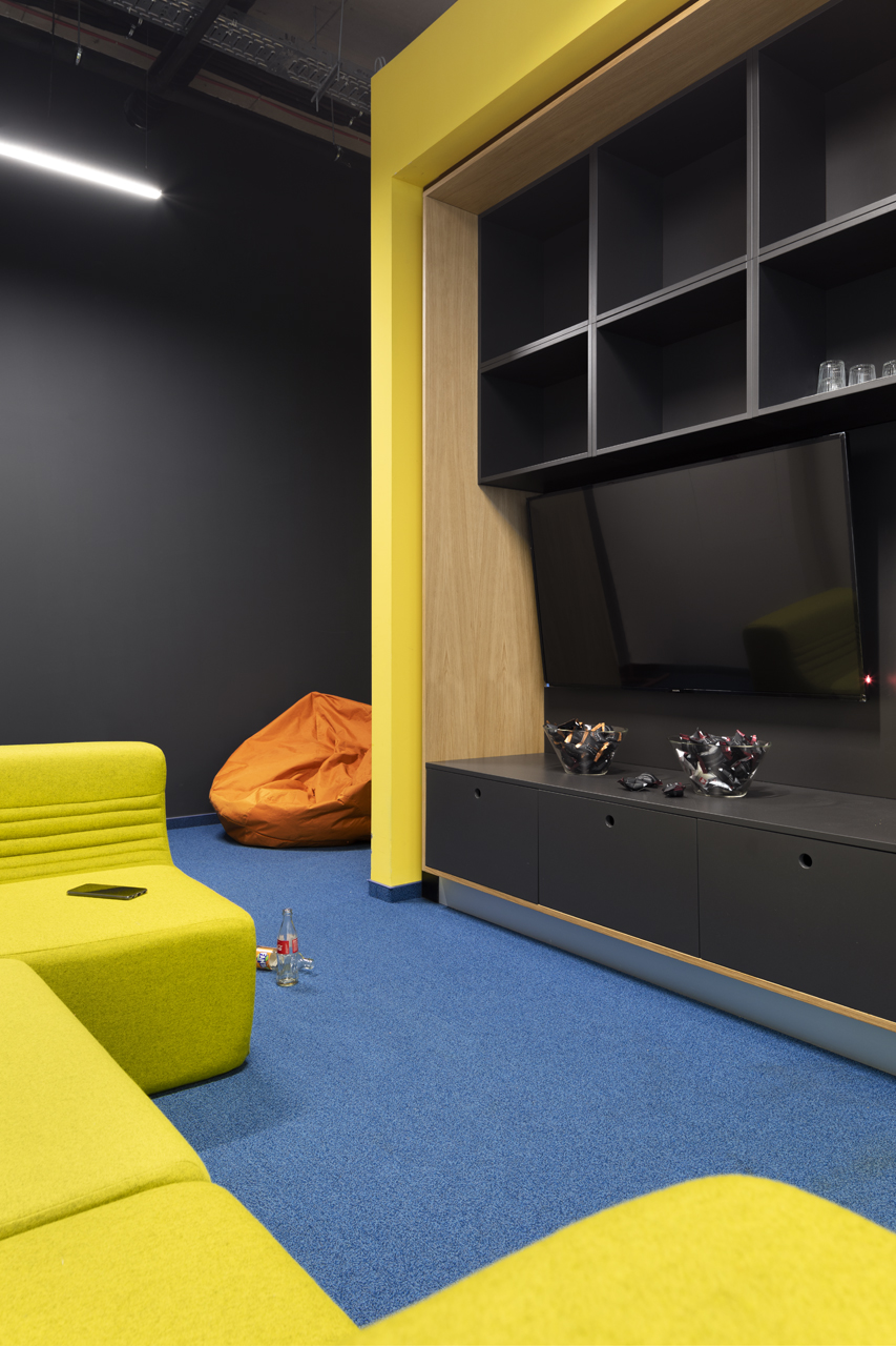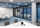 As a visitor, when you enter the Milestone office, you are welcomed at the reception and guided into the bright lounge area. To the left you can find the cafeteria and to the right – the conference rooms, both separated with retractable glass partitions that, if needed, can be hidden into the furniture walls, thus creating a large party/cocktail/event area. Next to the entrance are located the eight phone booths that can accommodated up to 4 people each – with sound-absorbing walls and ceiling and a themed poster-print on the back wall. Across the hall are the management offices – open to welcome a business meeting or a team discussion. Next are the employee-only and restricted areas which offer spacious open-plan working areas and divided by see-through furniture walls with incorporated abundant storage space.